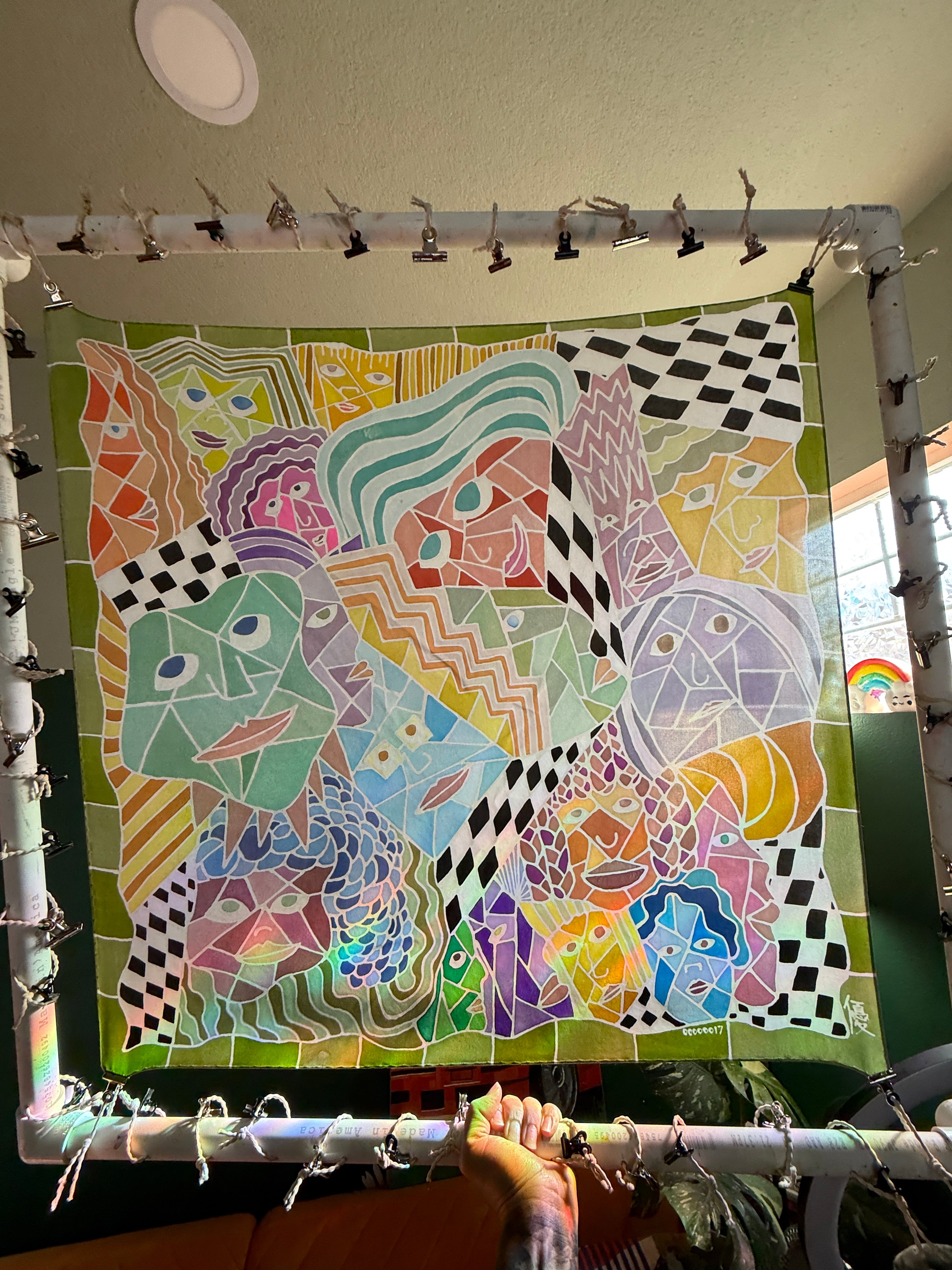 This is the first piece from the discovery of my art style. Made without references, just what felt good to me. This piece is my abstract representation of diversity, which I think is so so so important. One of my favorite parts of this is that each character has colors from another character, so everyone is connected and it’s truly one big melting pot! Even though “empty” space exists, in those spaces, they’re not connected by color, but by both the absence of visible light/color (black) and the reflection of all visible light/color (white).